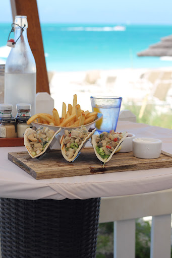 The Deck: One of my favorite amenities of the resort is the beachside restaurant. As I mentioned, we couldn't peel ourselves away from the beach view for lunch, and thankfully we didn't have to since The Deck was just a few steps away and offered the same gorgeous view, relaxing island ambiance, great service and delicious food. Highly recommend the tacos! We also visited The Deck for Happy Hour each day and returned after our dinners each evening for nightcaps. The lounger sofas were so plush and comfy and we curled right up next to the fire each night. Daison kept our drinks flowing and was an excellent bartender.