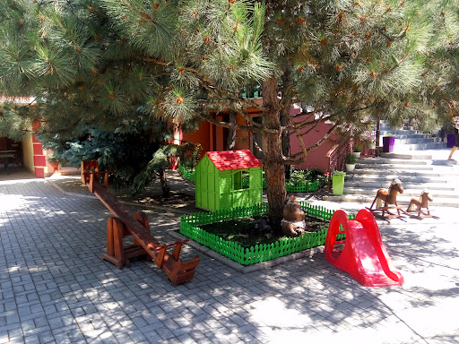 Read moreХороший отель. Очень просторные номера. С лихвой хватает для семьи из 4 человек. Чисто в номере, оборудован всем необходимым ( набор посуды, холодильник, мебель, большие кровати, чистое постельное, телевизор, кондиционер нормально работающий, достаточно большая душевая совмещённая с тулетом). Чистый затенённый за счёт хвойных деревьев двор с лавками, качелями, общей большой кухней, большими столами для приема пищи, мангалом. Так же имеется стиральная машина. Очень хорошо, что во дворе нет машин отдыхающих, они стоят на отдельной огороженной парковке рядом с готелем. Из минусов: хотелось бы что бы была доступная по цене столовая, дабы не рыскать по округе в поисках нормальной по цене и...
