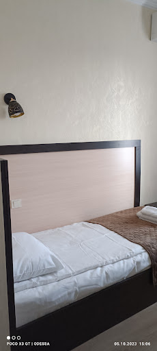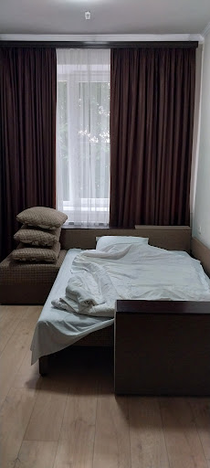 Готель знаходиться в годині від центру пішки або на 4 тролейбусі 15 хвилин. Готель відповідає своїй ціновій категорії. Знімали тримісний номер з окремою спальнею і вітальнею. Скромно але чисто. Двоспальне ліжко і розкладний диван. Білі постіль і рушники. В номері є фен (дуже втомлений), холодильник. По заїзду було 3 пляшки води. Мінікосметика відсутня. В душі є рідке мило, на умивальнику два брусочки мила. В номері тихо. Але під час тривоги сигнал знаходиться дуже поруч. Волає що вночі перелякались.