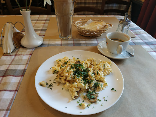 Завтраки проходили в Кафе-Ресторане "Буряк" при Отеле. Они были весьма здоровыми. Два вида на выбор: более белковый или более углеводиный. Мы с ребёнком брали оба и потом делили как основное блюдо и десерт. Обслуживание и обстановка в кафе выше всяких похвал. Очень быстро и радушно.