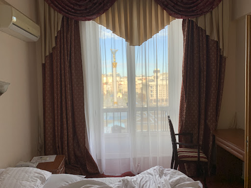 I stayed here a few days in early May and loved it. Nothing fancy because there is a war on, but the staff was great and you can tell they appreciate our support. I thought the breakfast was good. Again, nothing fancy, but it was healthy, there was plenty, and the little croissants were really, really good. Loved the coffee, too. There is a nice view from the restaurant.||The attractive, young lady that checked me in let me get in the room early which was a godsend if you take the night train into Kyiv. The sweetheart working the cloak room watched my bag for me after check out and reminded me of the good spirit that persists in Ukraine despite the daily hardships of war. This too, is a godsend, if you are taking the night train back to Warsaw.||The hotel is very central, and the view from my balcony was amazing, both day and night. Currently there is a memorial for fallen troops left front of hotel. You can buy a little Ukrainian flag from an old couple that are there almost every day, and place the flag next to the numerous photos of lives cut short. There is an underground mall directly in front of the hotel, and under street cross walks that make walking very easy. There are a plethora of restaurants, pubs, and souvenir shops in a half mile radius. A super nice post office is right across the street. The national bank and art museum are up the hill and behind the hotel and this street is blocked, but there is also extra security in this area. Witnessing the pattern of tracers and search lights, it was my opinion that this hotel is in a very safe location. My room had a refrigerator for beverages and a chair that fit on the balcony for enjoying the evening festivities. Sleeping in was easy and comfortableā¦but, try not to miss breakfast. ||The hotel is big and open, with four elevators and a marble staircase to the restaurant, the echoes of restrained grandeur are prevalent. It has a cool vibe of Soviet secrets shrouded in dim corners. Iām betting the guest list would raise eyebrows in my university political science department. ||The lobby bartender in the afternoon each day reminded me of the stalwart pier piling that had weathered storm after storm and still stands strong. The lines in his face and sparkle in his eyes translated more with less. I enjoyed my Jack and Coke Zero each day upon return and considered myself fortunate to have crossed his path. I very much enjoyed my stay at this hotel, and certainly will never forget my temporary camaraderie with the friendly, helpful, and tough Ukrainians making my stay an oasis in a beautiful, bustling, but beleaguered city. I will stay here...