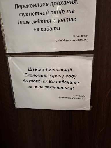 Read more🙂— Небольшой, но уютный и чистый номер в тихом районе Киева. Все удобства продуманны - бра, розетки и тумбочки по обе стороны кровати. Постельное белье белое и чистое, прилагается по два полотенца на человека плюс одно полотенце для ног (или под ноги). Телевизор с украинскими каналами. Холодильник компактный и бесшумный. В ванной комнате есть полочки для средств, шампуни и гели для душа, туалетная бумага, стационарный фен, горячая вода в любое время суток. Огромный плюс, что есть своя частная бесплатная парковка 🅿 Персонал приветливый и отзывчивый. На ресепшене можно купить одноразовые тапочки, гигиенические принадлежности. На территории есть кафе, с меню можно ознакомиться в номере, но мы его не посещали., так что сказать ничего не могу. ☹️ - Полочка в душе была ржавая, нужно бы заменить. Нет чайника в номере. Шумоизоляция средненькая, утром слышно было как люди ходят и общаются в коридоре. Далеко от центра. До ближайшего метро...