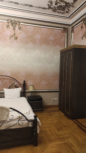 Зайшовши в номер ми подумали, що помилилися номером, тому що за 1250 грн такий шикарний, величезний номер (як сучасна однокімнатна квартира) і висотою біля 4 метрів, схожий на музейний експонат спальні якоїсь королеви, з двома широкими двоспальними ліжками. В номері ще є шафа, стіл, стільці, холодильник, велика плазма, тумбочки з лампами (нічниками)