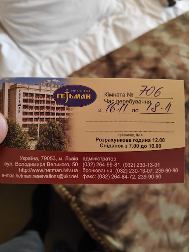 Read moreWe were planning to stay for 3 nights from December, 29th till January, 1st. We've booked a hotel 40 days before arrival. When we arrived at midnight we were told that our reservation was canceled and we can clarify any questions only next day when the staff who cares about reservations will be available to call them (probably after 10am because that was a holiday!). They gave us a room for one night but after that all rooms were occupied. We were happy to find at 1:30 am just released room for the next 2 days in the hotel not far from Lviv (almost all hotels in Lviv were booked beforehand for holidays, remaining hotels started from $500 per night).||The hotel and rooms are soviet style and cold. You'll get also a good opportunity to listen to the neighbors behind the wall, or the noise of cars outside. Bad location. When we came to the restaurant in the morning we were asked to come 20 minutes later because there was only one waiter and he had no time to serve all 4 tables. ||We do not recommend to stay...