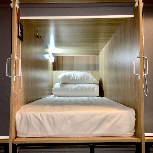 Read moreДуже цікавий і комфортний хостел, як за свою ціну. Коли приїхала вперше, навіть не повірила, що то та адреса 😅 Виглядає все супер, капсули правда як в космосі, є своя тераса, кухня зі всім необхідним, шафи, а також при заселенні дають капці і рушник. Всередині капсули є розетка і світло. Але є трохи і мінусів. 1 день в капсулі дуже смерділо сигаретами (не знаю чи хтось палив бо заборонено), але як мені пояснили справа в вентиляції. При заселенні в іншу капсулу сморіду вже не було. Також в мене був другий поверх і я не могла залізти, тому попросила змінити капсулу і адміністратор знайшов альтернативу і потім мені дали капсулу на 1 поверсі. Ще в капсулі дуже сильно чути все, нема ізоляції. Також рушники , капці та загальний стан хостелу був брудний. Тож хотілось би , щоб була звукова ізоляція, вентиляції краще працювали та було б чистіше. На цьому мінуси закінчуються. Все інше на суперовому рівні. Адміністратори привітні, завжди допоможуть. Можна попросити о допомозі навіть вночі. Також величезним плюсом є, що можна заселятись вночі о будь якій годині. Мешканці хостелу також привітні і жодних проблем не було, навіть навпаки - всі дружелюбні і спілкуються між собою. Ще величезним плюсом є локація. Хостел знаходиться в дуже затишному ,сучасному районі близько до центру і вокзалу, поруч є навіть зупинка, а також все необхідне. Аптека, пошта, супермаркети (також цілодобовий) Тож плюси точно перекривають всі мінуси. Дуже вдячна адміністраторам за допомогу. Хостел залишив приємні враження, та...