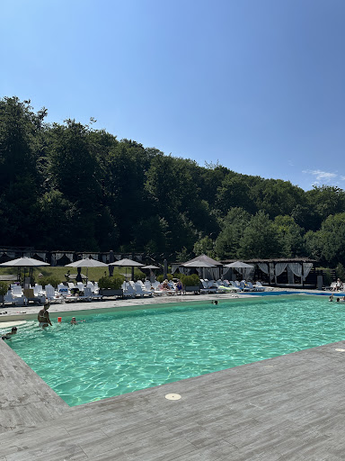Немає стабільного звязку та Wi-Fi. Гуляючи по території , в сауні, будиночках, та номері, немає стабільної мобільної мережі та " вайфаю" В сауні немає нормального зв'язку, щоб подзвонити в адміністрацію і також немає кнопки виклику офіціанта. Також в душі сауни немає ні вішачків, ні поличок для рушника чи аксесуарів. Досить прохолодна вода в басейні. на плитці біля басейну були клубки волосся. не було рушників, шапочок, зате було 2 пари поношених пінкових тапочок, які були замалі на мене і завеликі на дружину. не було ніякого посуду.