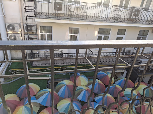 Також є проблеми з дизайном: на стінах у номерах висять дуже специфічної художньої цінності картини, а балкон прикрашений штучними квітами, що ніби "ростуть" у горщиках і (припускаю) мають виглядати натурально знизу для перехожих, але на самому балконі вони виглядають як цвинтарні квіти, бракує хіба що намогильних віночків.