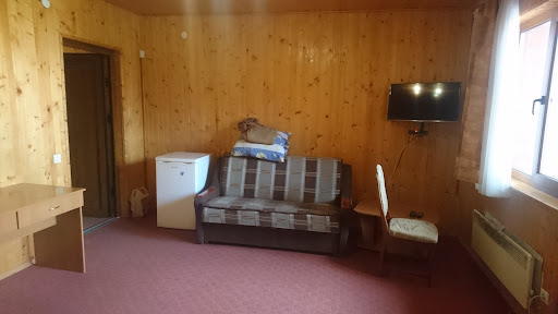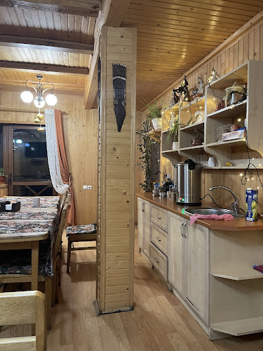 Територія велика, гарна, краєвид на гори, ліс та сусідні готелі. Є великий басейн і маленький дитячий з підігрівом. Це дуже зручно коли є малі діти. Біля басейну є дитячі качелі. Будиночки двоповерхові дерев'яні. В кожному будиночку є лавки, біля будиночку теж. В будиночку є 4 номери. Біля кожного будинку є беседки та мангали. За дрова окрема плата, тому бажано мати свої. На території є сауна з басейном. В окремій добудові очисні споруди. Номер досить просторий, що порадувало, в нашому номері два балкони. Двоспальне ліжко і розкладний диван. Є сучасний телевізор , холодильник та електричний чайник. Дуже порадувала велика шафа купе, що дозволяє зберігати порядок в кімнаті і організацію речей. У ванній кімнаті туалет, бойлер, умивальник з шафкою та душова закрита шторкою. Нас чекали міні мила, разові гелі для душу. Біля басейну є закрита на ключ ятка з морозивом, де його можна придбати ( але то займає досить немало часу зазвичай). Працюють там пані Дарія та пан Ігор, які є досить приємними та старанними людьми. Тепер мінуси: 1) у номері дуууууже слабке освітлення 2) у ванній бракує полички для косметики, є шафка, але поличка таки треба. 3) у нашому номері у ванній не фіксується душ, треба тримати в руці, що не дуже зручно 4) мильничка алюмінієва поламана і жахливо виглядає. Краще б вже була пластмасова за 6-7 грн. 5) не дуже зручним є те, що оскільки готель розташований значно вище головної дороги, а магазини чи кафе є саме вздовж дороги, то Через це виникає трабл з приготуванням їжі. Оскільки на території немає кафе, то варто додати хоча мінімальне приміщення для розігріву чи приготування елементарного сніданку. В номері є чайник то можна зробити чай чи каву. Але до чаю залишається чи то сухі сніданки чи мівіна😬 чи канапки. Варто б десь хоч кашу зварити чи щось підігріти. Бо варіант йти як встали в ресторан кілька км або ж на сусідніх базах є ресторани. Взагалі можна проситись на кухню до працюючих і там розігріти, але проситись щоразу якось незручно. Це має бути доступно весь час як на мене.