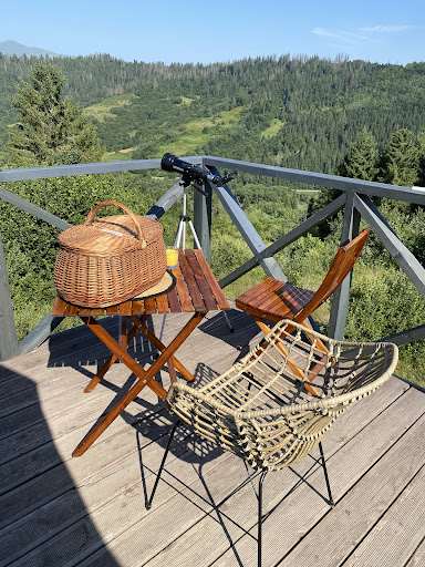 Read moreВідпочивали тут 4 дні. Краєвиди казкові, в будь-яку погоду пейзаж буде неймовірний. Відпочинок для людей, що шукають спокій і тишу. Спів пташок, шум від дерев. Засинати і прокидатися з відкритими вікнами з видом на гори то взагалі казка. У випадку, якщо ви приїхали на машині, що навряд підніметься по гірській дорозі, вас довезуть на джипі. Це однозначно +. Сніданки смачні(приносять о 10), можна обрати яєшню, омлет, млинці, сирники чи каша. В номері чисто. Варто врахувати, що магазини знаходяться далеко і готувати їсти доведеться самотужки. Мангали є, дрова, розпалювач теж є. У випадку непогоди електро плита з однією конфоркою є. Інтернет був. В день приїзду працівники помили плівку і вид з ліжка був неймовірний))) за це їм - велика подяка. Під час сонячної погоди будиночок нагрівається і утворюється сауну але кондиціонер рятує.