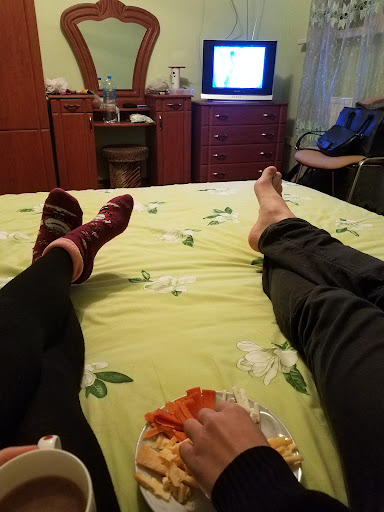Read moreНе прибрано. Пообіцяли 6 спальних місць. Як виявилось було лише 2 нормальні ліжка на 2 особи, ще 2 спали на матрацах на підлозі, ще 1 на дивані, який не розкладається, бо поламаний, ще 1 на тому, що мало розкладатися і називатись диваном. Різниця між верхнім та нижнім спальними місцями дивана становила близько 20 см. Так, всі правда на чомусь спали, не на голій підлозі. А покоївка після нашого зауваження з абсолютно нормальним виразом сказала: "Ну що ж! Будете мінятись!" Постіль. Все старе, зіпране, страшно торкатись, добре, що мали запасну свою. З посуду - 4 чашки, 7 вилок, 2 столові ложки, згоріла засмальцьована лопатка, каструля, 2 напівсковорідки, до яких все пригорає. У ванній плитка на підлозі аварійна. Хитається. Фену немає, треба кілька разів просити. Ключ - 1 на шістьох. На прохання наступного дня принесли ще 1. І за це ми заплатили 2400 грн за 3 ночі. Чесно кажучи,...