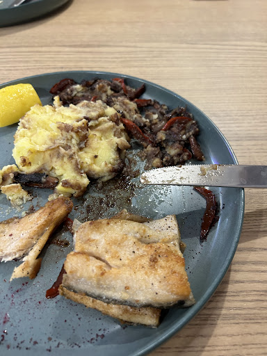 На мої зауваження, після варіантів, як готувались овочі, мені запропонували приготувати інші - я написала про це у відгуку. У розібраній страві видно «якість» інгредієнтів, і їх приготування - підігріте пюре, те, що називається «тушкованими овочами», і зверху риба. У вас гарні територія та приміщення, і є можливість якісно обслуговувати гостей. Можливо, мені не пощастило в той вечір.