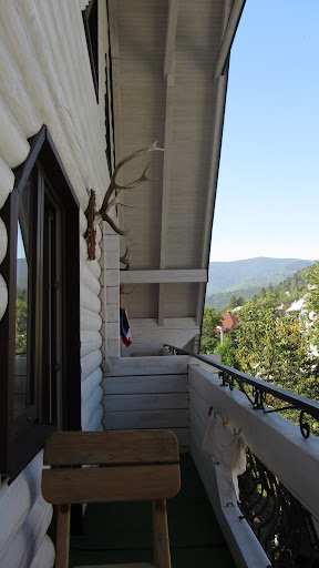 The hotel is an absolute gem. My husband and I stayed a week during the long May break on my colleague's recommendations and were so happy we did. Our room (a junior suite with a balcony on the 3rd floor) was spacious, tastefully decorated in a Swiss chalet style (lots of light-coloured wood everywhere), very clean, and had a very comfy bed. The view from the room is just breathtaking! It was quite warm so we were able to enjoy a cup of tea on the balcony, enjoying the view and wearing the provided plush bathrobes (let me tell you this, I've only had a better bathrobe at Intercontinental. Honest!) ||||Front desk staff were friendly, helpful and happy to tend to our every whim. They arranged a number of trips to other parts of the Carpathians for us, booked our taxis, offered advice on places to eat and generally made us feel very welcome. Location of the hotel is very good - about 5 minutes on foot to Yaremche's main street and train station, 10 minutes to the waterfall. ||||The property is rather big, with many blossoming trees and bushes, outdoor sheltered pavilions where you can have a meal from the hotel restaurant, benches, and basically everything you need to spend time outdoors. There's also a sauna, which is free, and a massage room. ||||Beware though, the building has very thin walls and you can hear everything going on in other rooms, even listen in on louder conversations. May not be suitable for light sleepers. Otherwise, my stay was just perfect and I will...