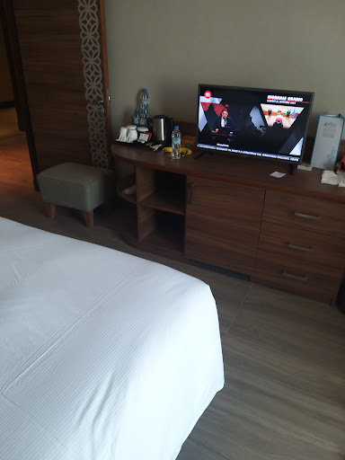 After nine of twenty-one nights in room 516, I still have mixed emotions about this hotel. Check-in was pleasant and they have great staff. The guy who does the housekeeping is always friendly, although this is the first hotel I have encountered where housekeeping is done between 5 pm and 7 pm, just as guests arrive back from a day in the city to freshen up for a night out. Staff at reception, at the pool and in the restaurant is professional as well. The room is large enough and has a comfortabele king bed. Room and bathroom serviced daily. The Internet signal is not the fastest, but enough for checking mails and browsing. A safe and fridge are provided. The location is not in the most interesting part of Dubai, but there is a free shuttlebus taking you to the mall and beach v.v. daily, two metrostations within a ten minute walk and a busstop in front of the hotel. The reason why I hesitate to make this a four star review, is that the shower on many occasions only offers a very low water pressure and cold or lukewarm water at best. That is alright for cleansing your body, but not for washing your hair. I have already reported this twice, but without any improvement. The room is very noisy as well. No outside noise, but I have children in room 517 next to me that I can hear shouting, day and night even well past midnight. And the furniture is worn, old and sometimes damaged. So. the room can do with some renovations. And they only have four sunbeds at the small pool, which is strange for a seven floor hotel with more than a hundred rooms. Since, I am staying during the holy month of Ramadan, the nightly rate I pay, is low. Basically, I still haven't decided between three and four stars. I still have twelve nights to go to make up my mind and write a definite review later.