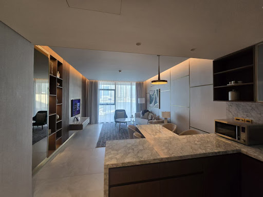 The apartment suites are exceptionally well-appointed, exuding a clean, modern vibe with smooth furniture and incredibly comfortable bedding; perfect for unwinding after a busy day in the city. Every detail felt thoughtfully curated for comfort and elegance while the balcony is also vast. The kitchen was well stocked so we easily catered to all our kids needs.