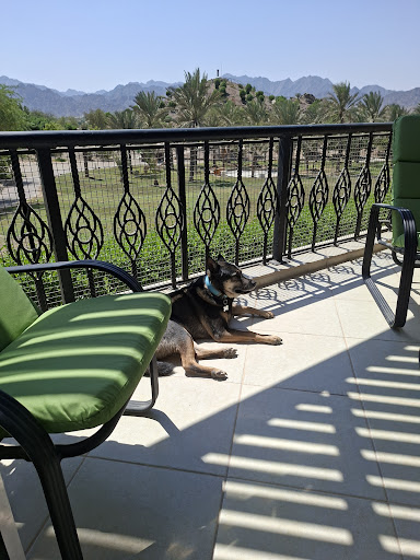 This was our first time in Hatta and also first time travelling in the UAE with our doggy and we loved every moment in this resort! The place is incredible, a true oasis of peace surrounded by the mountains! We loved the nice walks with our dog in the beautiful and relaxing gardens, between palmtrees and flowers, the view from the viewpoint is amazing and our dog enjoyed climbing the rocks. Sunset is stunning from above the Rock Pool. Food is amazing, especially the breakfast with a choice of everything to accommodate all nationalities. We were able to sit at the terasse with our dog and it was very nice. The Gazebo staff are super nice! The 2 pools are great, we liked the Rock pool, but unfortunately it was out of service one day during our stay but it s ok as we were able to use the other pool. The staff at the pool (sorry we forgot the name) was always so kind and always came to accommodate our doggy with a mat and some water in a bowl. Many hotels wont let doggies at the pool area, but here he was allowed and it was great. All the employees in general were so nice and lovely, very kind and welcoming. Thaw Thaw was so friendly, Aisha at the reception was very helpfull and kind, the other receptionist was always smiling and friendly as well. Reception manager greeted us very warmly upon arrival and everyone was always very nice with our Pet, we really felt he was loved and accepted. Also he was welcomed with treats in the room and 2 bowls plus a mat for his food, they gifted him also a small bandana. The place is perfect for pets, the room is so beautiful and cozy in all details (pet friendly Deluxe mountain view) the balcony as a metalic grid so no one can escape :) we appreciated the coffee maker in the room and the Italian coffee (i am Italian). Bedding was comfy and bathroom amazing. Everything is very well maintained and there is a lot of attention in all details. We just wished the TV would be "smart" for the evenings movie nights ;) We didnt try all the activities, as we were just relaxing and staying with our doggy, but maybe next time when the weather will be cooler! The only downside for me personally, it's the use of dynamic pricing for the room rates, since it becomes a bit complicated to plan a trip, as from one day to another the price can change significantly, but I can understand that this is the way the business works. Also the pet fee was not very clear during the booking process, as there is a sanification fee of 250d which appears by default in the reservation but then there is a 50d per day pet fee on top of that to be paid at the hotel, which is not clearly stated during the booking. I personally felt it is a bit overpriced, since the pet friendly room is already more expensive than the same room not pet friendly, but thats my personal opinion. We were very happy anyways, See you again! And thanks for the...