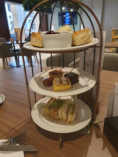 Read moreThe tea for afternoon tea arrived at 2.20pm The food arrived at 2.42 by that time I had finished the tea so I asked for more. Finger sandwiches were, egg mayo, cheese & pickle, tuna & sweetcorn and ham and mustard. See pictures the crusts were only partially taken off and the bread was dry. I asked the waiter if the crusts were supposed to be taken off, his reply was yes, I showed him all the crusts and took a picture. I left the crusts along with a picture. The 3 mini cakes were ok. But the scones. One was ok but the other was dry and I left most of it. |Booked in the room is good, went to the bar for a well-deserved Long Island Iced Tea, guess what they don't do it, so I ordered the spirits and made my own in a pint glass. Nice and strong. I then went to the spa. The lift to the area is not working and the jacuzzi is not working. So only a|small pool, steam room, and sauna, so not good. Hopefully, my evening meal will be good. |I ordered the warm potato bread roll with sea salt butter. Duck Liver parfait with cinnamon granola and toasted brioche bread, I would have preferred the crunch to come from the brioche, which was soft. The main I ordered was Chicken Schnitzel without the fries but with onion rings it came with a watercress & parmesan salad with a truffle mayonnaise. No watercress just lettuce, rocket, parmesan & the dressing. I ate the Parmesan. The Schnitzel was thin but not sure if the chicken was precooked cooked then breaded. Sadly no room for dessert, but I'll look for tomorrow. Now for the buffet breakfast tomorrow normal hot breakfast layout, some extra choices on the menu. What I had was fresh and hot.|Went for lunch in the bar I chose the soup and sandwich combo. Soup was roasted red pepper and tomato with a swirl of herb pesto this was good. I had a Prawn Marie Rose sandwich. I seem not to like the bread, the generous filling of prawns just about covered the bread so I just ate them. The prawns were not soft they had the moisture squeezed out of them as if quickly defrosted then squeezed. Ah well, last meal tonight in the à la Carte restaurant see what that brings.|Not feeling hungry so I just ordered the same soup that was in the bar earlier but something different about it, I think it was lumpy. I then had the raspberry delice this was nice and refreshing because of the sorbet served with it.|All the staff in every area were very professional and helpful. I did voice my complaint regarding the afternoon tea quality to the barman and also the reception when I...