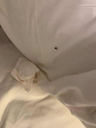 There is a stain on the duvet, indicating they have either not been washed at all or not been replaced after cleaning has failed to lift the mark.