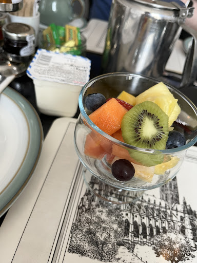 The continental breakfast was amazing. Never before had such a delicious fruit salad with every piece of exotic fruit you can imagine. With the best quality M&S Greek yoghurt, selection of 6 jams, toast, croissants, cereal, all washed down nicely with a pot of tea / coffee. We sat by the bay window overlooking the town square and what a magnificent start to our day. They always asked if baby needed anything and then helped us wheel baby or lift his stroller down the various stairs back to reception where we could store his equipment.