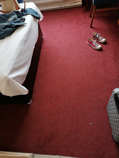 Firstly the staff we met were friendly. That is the only positive about this 'hotel'. Upon arrival from the rear car park, I entered the hotel and had to walk through a corridor of flies. Not a great start. The young lad on reception was friendly and efficient but as I looked around, I thought I had travelled back in time to the 80s or 90s. The whole hotel is tired, unloved, stained and in desperate need of a refurb. The radiators were on full blast in the rooms (perhaps recruiting more flies?) - in the first weekend in July. The only solution was to have the windows open completely. The walls, ceilings, surfaces, carpets are all stained, fabrics frayed and just well past their sell by date. There were no crumbs or stray hairs in the room but as the saying goes the cleaners and staff "cannot polish a...." We spoke with some locals and when we explained where we were staying, they laughed and screwed their noses up. Finally, do not try to return to the hotel after dark. Both evenings our party returned to the hotel just after midnight. There is no way to open the doors and no one responds to the door bell. The first night, one of our group had to climb in a first floor window and the second night a ground floor window. Even for the price, the hotel is vastly overpriced. I really wish I had read the reviews in advance and that is the reason I have taken the time to post this. Please see the photos showing the conditions of the bed. I did not dare to pull back the covers. I felt like wiping my feet on...