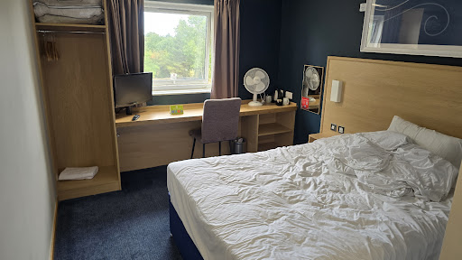 Read moreTerrible experience. The road outside was noisy the lobby and corridor was outrageously loud and deafening. All you can hear from 4pm until 1am is people slamming doors, banging bedpostz and head boards, screeching car whee lsand the lovely noise from rowdy drunk people accessing their rooms very verbally at gone 4am. The bathroom was so small we couldn't even fit without squeezing the toilet door to the side. It was quite mouldy and filthy on the bottom of the shower cubicle we had stains on our bed sheets and found used condoms on the floor which was hidden behind the back of the radiator . It was incredibly hot in the room as some idiot from before blasted the heating up in may who does that!! There isn't the option of breakfast or dinner like other travelodges which was severely disappointing. We had to open all the windows which was thankfully not stuck on any hinges to get fresh air. The carpets hadn't been cleaned properly it was stained very bad. We had the stench of alcohol coming through our door from the corridor where others acting irresponsible with drinking. It smelled very damp. The bed was uncomfortable and looked as if the headboard needed a change as it was lopsided. The only decent thing I suppose some might say is it has kfc and another restaurant nearby which is handy but gets busy and doesn't often serve what you ask for. The only good thing was having a handy grocery store asda nearby that you could go to get some food! As someone with intolerance these nearby restaurants did not cater for My needs at all. I had to land up buying snacks from Asda and getting a pizza from town. Avoid thiz place...