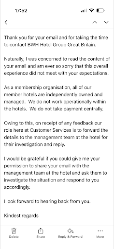 Ā Ā Ā Read moreBedroom and bathroom were absolutely stunning.|Comfy mattress.|Plenty of tea and coffee.|The negative I have for this hotel leaving my review was a 3/5 was I booked through triple for 2 adults and they changed it to 1 adult (no fault of the hotel of course) but on departure I was asked to pay Ā£25 for my partner. |I of course paid this but I did query as to why. |The gentleman on reception explained that they had single occupancy guests complaining about the fact they were paying Ā£105 for a room so they lowered a single occupancy to Ā£79.|I work for a hotel myself and we charge by the room , it doesnāt matter if thereās 1 adult or 2 adults and 3 children. They use the same room. |A single occupancy guest could use the same amount of amenities as a family of 5. |I do not agree with this extra charge and believe all hotels should be on room rate not the amount of guests. The 2 gentleman I dealt with were absolutely fantastic. This isnāt a complaint more of a criticism. Of course I understand staff are only following their policies and I completely respect that. I would have stayed with this hotel again but learning that itās Ā£25 for my partner to come into the room and share a king sized bed with me and 1 tea bag each is a bit silly. |If we had squeezed into a single bed Iād...