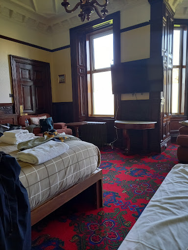 Read moreI would not recommend anyone to stay here, even for free. Our room had a horrible smell, like damp/metallic/stale cigarettes, smelled as if an old alcoholic tramp had been living in it. The whole building is tatty, old and dirty and very unkempt. The carpet had multiple stains and burn holes, the bathroom door had a huge gap aligned with the toilet, holes in towels and bath mat, wooden window shutters hanging off in parts with wood rot, DIY plug sockets attached to bedside tables with wires running round the bed thick of dust, windows were scruffy, bedding appeared to be clean but full of holes, the pillows were stained yellow. Hairs and something unidentifiable splattered all over bathroom walls as well. Staff seemed to be shocked at our arrival running around flustered and then again when someone else arrived and rang the door bell, they also told us our room key could unlock the main building door and internal door, which led us to think all keys could access any room in that case? we stayed in the ground floor Calder room which isn’t shown anywhere online and it’s clear why as we got the worst room in the place. Outside was equally as bad, piles of rotting wood and overgrown trees and weeds made it an eyesore. We aren’t fussy or hard to please, a clean comfortable place to stay for a night when visiting is all we require but this place is stinking and I’d strongly advise not to visit, which is a shame because the building and grounds has the potential...