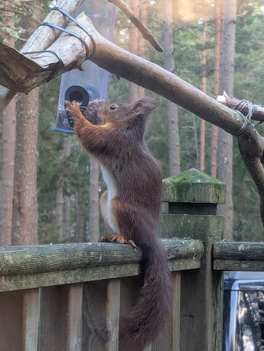 The birds and wildlife on our doorstep (literally) was amazing with red squirrels, hedgehogs, deer, frogs, etc seen daily along with a whole host of birds from garden birds to normally shy woodland birds like jays and woodpeckers visiting for some of the bird food we put out multiple times every day!