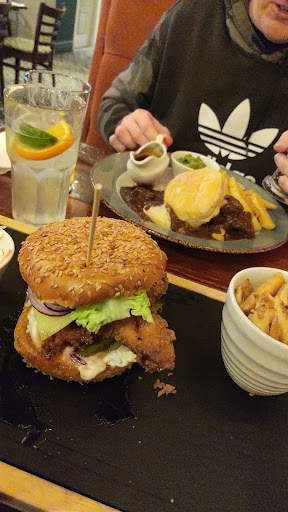 The restaurant offers a spacious menu with a large selection of local beer, cider, and wine. Plenty of places to sit. My sister and I ate there once a day and were never disappointed. The prices are reasonable and compare to any other pub/restaurant in the area.