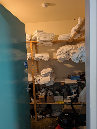 Bathroom was clean, well appointed but old. No shower curtain so there was water everywhere - not their fault but design flaw. Lighting in room was ok - hard to use desk, so i ended up sitting on bed to use natural light from window.