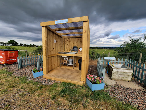 We booked a 3 night stay for our first camping trip. We chose this site as it appeared to be a quiet site with basic amenities (exactly what we were looking for).||We chose to stay on an all weather pitch, as it states it has electricity, water, chemical waste and grey waste. I assumed all of this was included on the pitch, not one chemical and grey waste point for the whole site, maybe I read this wrong. |Also it states use of male and female shower rooms. There are two showers, used by either male or females. The showers are individual with lockable doors. They have a shower tray with curtain and a space to get dried and dressed and have a mirror on the wall. As we knew the amenities were basic, we weren't shocked that there was low water pressure and temperamental temperature. We did find we needed to queue for the showers after 8.30am if we wanted to get ready for the day earlyish. |The two female toilets, were again very basic. There is no mirror or means to dry hands other than with toilet roll. There is one sink. So not ideal for using to get washed and brushing teeth if someone is waiting to wash their hands too. The toilets themselves appeared clean and there was toilet roll. I noticed a few spiders and flies within the spider webs hanging from the ceiling (but I imagine with them being outdoor toilets this is difficult to keep on top of. |I can't comment personally on the male toilets, but would imagine they'll be similar to the female ones. There was 1 disabled toilet, although I couldn't see a ramp for access and the door opened outwards, so if you are a wheelchair user, this toilet wouldn't be suitable (although I could be wrong and there may well be a ramp if required, I just didn't see one).|There was 1 outdoor sink for washing dishes, which again needed to be queued for if using at peak times. There was no plug for the sink whilst we were there so just had to keep the water running which wasn't ideal. However the views over the fields and the animals was a lovely bonus whilst doing the mundane job! ||We walked into Dalston using the path from the camp site (the provided guide for how to walk into Dalston was very handy). The village is lovely, with a coop, butchers, sandwich shops etc. The downside is the public toilets are closed (apart from the disabled one, for which a radar key is required).|We walked over the bridge over the river and walked along the path parallel to the river which was lovely and then managed to find our way back to the site. ||We went to the honesty shop once which had some logs and marshmallows to buy, although we didn't have a fire pit on our pitch, so didn't need to purchase them. |There was also a couple of other items available. |No drinks or ice cream/ ice lollies were available to buy, it would have been nice if there was. It also appeared that the fridge wasn't working and I didn't see a spare freezer to refreeze freezer blocks in, which would have been handy. ||We had two really great nights sleep, the campers were all respectful and noise was kept to a respectable level whilst still having fun. The farm animals in the surrounding fields sounded lovely (even at dawn).||Unfortunately our 3rd night, just as the site was quieting down for the night and people were sleeping (there was at least 8 young children on the site) we were disturbed by a car and caravan arriving after 10.30pm, closely followed by a second car, the engines were kept running for over an hour, I imagine for the headlights so they were able to see to pitch up, which wasn't a major problem (although I'm sure I read the gates are closed and no cars on site after 10.30 unless prior agreement) and to be respectful of noise after 10.30. |The children from this caravan were obviously excited to arrive and were running round and screaming, although being repeatedly told by their adult that they should get back in the car, they didn't and this noise continued for over an hour! This wasn't the worst of it though, arguments between the adults started and got louder and more aggressive, they appeared to be walking backwards and forwards over the gravel near our pitch, whilst continuing to have zero respect for anyone else on site and just kept going and going, this didn't seem to quieten down until at least 3am! |At first I did think that this was no fault of the site owners and out of their control, however on speaking with family members who have camped for years, they've said if a site states that no cars after 10.30 that this is enforced and have seen cars/caravans be made to park away from site and ask to wait to pitch the next morning, so as not to disturb the already sleeping campers. The arguing adults wouldn't have woken the full site had they not have been allowed to enter after 10.30. This really spoilt our last night. Whilst I didn't personally contact the owner regarding the arguments, I spoke to a fellow camper the next morning who said they'd text the owner during the night to let them know there was trouble which had woken and petrified their kids and to ask for advise on what to do. I believe the owner did respond after 8am to confirm they'd have a word with the noisy campers. ||As we were leaving that morning, we packed up and headed off site around 9.30. There was no sign of the noisy family before we left (probably sleeping soundly after going to bed after 3am) and we didn't see the owners before we left either, so I'm unsure of the outcome or how their behaviour was dealt with. |||We wouldn't personally go back to this site, as although we knew the check in and out times prior to booking, I have since found that checking in after 3pm and out before 10am (unless you pay an additional £5pp per early/late checkout) is a bit unusual for a hard standing pitch, as there is no need to have a 5 hour gap between guests as there's no grass to dry out, so unsure why there is such a late check in and early check out. |Also I'm sure I read that all dog breed are welcome on 