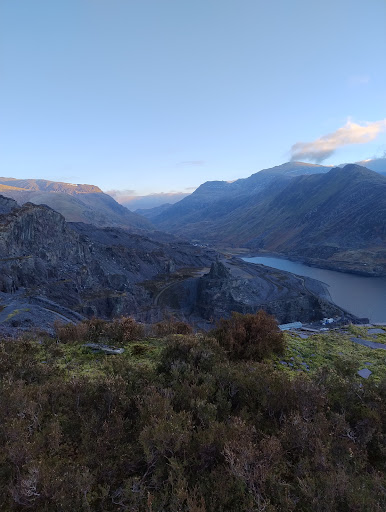The view from here are spectacular; the rolling hills, the mainly streams, the open slate mines, and even Snowdon with is snow kissed summit.