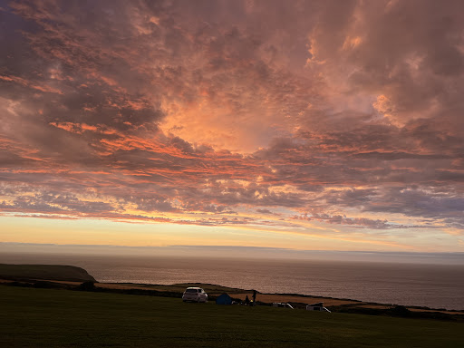 We arrived at the campsite very late and were met by Ian (the owner)who helped us to an area in the dark. He gave us such a warm welcome we felt ourselves instantly relax. When we woke up in the morning the first thing that hit us were the breathtaking views. We quickly sorted out our motorhome and tent and a member of staff (Rob) paid us a visit to make sure we were okay and to inform us of the amenities and freedom. What a breath of fresh air to not be squashed within a tiny plot and we are welcome to have campfires and no extra charges. Brilliant! The amenities are fantastic. There are many dining areas. The main area contains a free washing machine and tumble dryer, large freezers and fridge, hot water on tap, toasters and inside sinks. The dining halls have lots of benches to eat and drink or just to socialise. The toilet areas were very clean and there were plenty. The soap dispensers were always full. The showers were also very clean and the powerful. For the part of our holiday we had a cooked breakfast which was offered from the campsite. Delicious; beautifully cooked and cereals, toast and drinks as much as you wanted for just ÂŁ6.00. Eve you are a superstar! There are pigs to look at and lots of farm cats and kittens, I'm surprised that our daughter didn't try to smuggle one home. We had two campfires, with logs and kindling bought from the Reception. It was so lovely to sit and chat and toast marshmallows. Our 6 year old daughter summed up how we all felt by saying "This is the best night ever!" Near the end of our stay the weather took a turn for the worse with very high winds and a severe weather warnings. We packed up our tent early in 24 mph wind, instead of the 60mph winds forecast the next day and we were prepared to leave. We met Ian who kindly offered a bunkhouse room to stay in to complete our stay and at no extra cost. We did as we really didn't want to leave, more about the bunkhouse later. This generosity was offered to others who stayed, tents were moved into barns and staff helped to pack up and move people. This kindness and generosity is what makes this such a fantastic campsites, you feel that you are staying with family. Our bunkhouse stay was lovely. The rooms are simple, clean and warm. The beds were very comfortable and our daughter had her first sleep in a top bunk, which she thought was "absolutely brilliant!" We were so pleased to find this amazing campsite. Everyone is friendly and helpful. When you visit you truly feel that you are becoming part of their family. We have already booked for the October holiday to stay in the small bunkhouse. If you want beautiful views, coastal walks, family feel, super amenities and freedom, you will love it here, because...