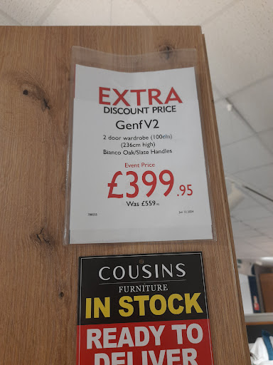 Read moreThe worse company, I ever bought furniture from. The long story short as still is ongoing and nothing has been resolved. We bought on 5th of June 2021 dining and coffee table, plus six chairs. One month later 5th of July we received damaged dining and coffee table, and 3 out of 6 chairs. I raised the issue on the same day of the delivery but nothing has been done, until March this year as the women who dealt with my case left the company. Finally, when I saw light on the end of the tunnel, I was disappointed again!! Cousins agreed to order new set of dining and coffee table, only to arrived damaged again. Twice they attempted to deliver the other chairs bit the wrong ones. Only yo be told that our originally ordered has been discontinued. Initially they agreed to replace it with another set, we wanted to go with marble but they haven't got the colour which will match our furniture. Then we asked for our money back but only received very rude email from the Purchasing Director of Cousins, that we cannot replace the furniture only they can give us new six matching set of chairs. Then being forced and worried that I won't be able to have my money back, we have to reselect new wooden dining and coffee table, very similar to what we already have got. But this of course because of the inflation come with a bit over £1000 we have to pay. I am not happy to pay extra for something that is not my fault, if I had not damaged furniture and the full set of my chairs, l will not be in this position that I am now. Still no furniture, no money, out of pocket and dealing 17 months with something that can be simple purchase. I do not recommend Cousins to anyone. Paid to insure the furniture and seems, I lost the insurance as well as I've got...