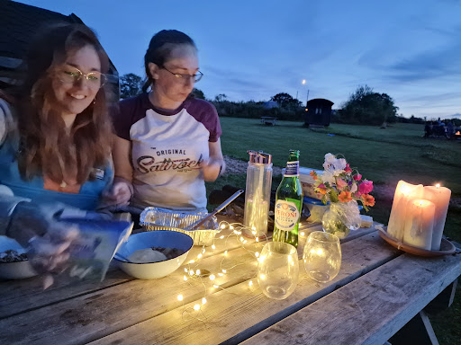 Read moreStayed one night to attend a local wedding. Altogether impressed with the friendly welcome and also allowing us flexibility to check in a little early so we could get to the wedding on time. We slept four adults in Morgana. Our wider family took over the site for the weekend, and there were nice outdoor communal areas for us to get together (we're all seasoned campers). Quirky and comfy, the cabins were well insulated. No bedding (as per instructions) but most other facilities provided - even small towels in the bathroom. Lights and usb charging sockets in the cabin. We brought a small stove as advised, but there were kettles and cooking/washing up facilities. Fire pits and barbecues and picnic tables scattered arou d. Toilets and showers were spotlessly clean and modern. Lovely site - well kept grass field with sections left to wildflowers. Chickens on site. Nice cafe area to chill and buy supplies. We did stay in warm May weather, although the evening was chilly. Well impressed. Would definitely...