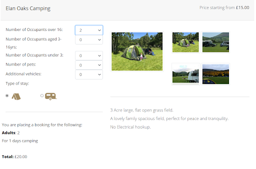 Signage in the campsite is also poor, being faded laminates, and no map of the campsite was provided in the booking email or on arrival to show where you are supposed to go. We accidentally parked and set up tent in the wrong spot because of this, and were made to move after having set up, and were bitterly disappointed with the lack of expected facilities across the campsite. When i tried to show the lady the email to explain the lack of directions, she shrugged it off and said it showed clearly (apparently the simple words "Elan Oaks Camping" is clear enough with no other indications, but i thought that was just the name of the campsite!).