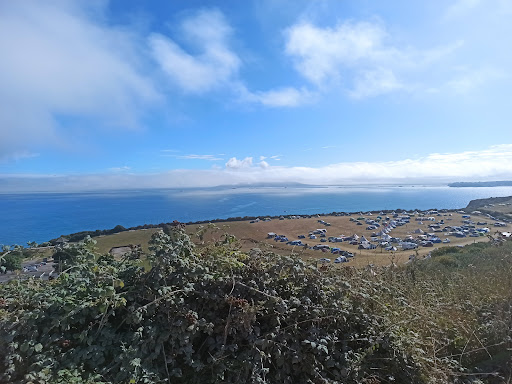 Read moreI wanted to share a balanced review on this campsite as reading the reviews before I joined my family with young children I was a little worried. However, the site is clean, the shop and the food is not overpriced considering you are onsite. I run events with street food and the prices were on par with those. If you expect super cheap then this isn't the place for you. There wasn't much for vegans but they are trying so that was good to see. It does make me laugh though when the owners are all about sustainability and own a solar panel company yet animal agriculture is the biggest issue for our planet right now, but I am used to this. I don't mind long drop toilets and they are better for the environment plus there were flushable ones available too, we never had an issue with the loos, although they could put in the kids seats that pop on top to help with the smaller children being scared of the big hole and help with the peeing all over the seat. The showers were hot which was a blessing, and to have hot water to wash hands and wash up was a bonus! Also whilst it is a beautiful site along the coast, the small pebble beach is not somewhere I would want to spend the day as the steep steps up and down would become quite tiring if kids needs the toilet (not just number ones!). Weymouth is just up the road and you can even see the beach from the site, and it worth spending a day/afternoon at. Whilst many say there are lots of free activities for the kids, we didn't really feel like this as many were an extra fee, however, the kids loved playing on the hay bales until some older kids came along got rough and pushed 7 years old off and a boy jumped on our 8 year old cousin. Maybe the site is more suited to older children as ours range from 5 to 9. Yes the ground is not level in many places and that can be a huge issue although we found a flat spot and were directed upon arrival to the East Field as more family friendly. I don't really agree with the puppy pen and to be honest it was a huge anticlimax for the children as none of the animals (including the farm animals) gave two hoots about the humans, in fact you are better off supporting an animal sanctuary where animals have been rescued and are super grateful and friendly. There are a lot of big groups and if you are a huge group who love drinking copious amounts of alcohol and letting your children run wild until early hours then this site is definitely for you. However, we wanted to get some sleep and this is definitely not a chilled vibe here. Personally I don't have anything about people drinking but sadly people forget that they get louder when drunk and that canvas is not sound proof. Also a diesel van rocked up on our last night and kept running his engine guessing to power his leisure battery that was obviously going flat but doing it during the middle of the night for 15 mins was not acceptable behaviour. I feel like the site is a good analogy on life right now, people don't think about others just themselves so sadly we will not return due to the noise mostly as there are smaller sites that have more trees and beautiful surroundings to explore. However, grateful to have visited and...