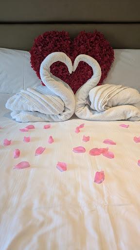 What can I say about the wonderful fantastic staff at the Premier Inn in Thornbury. When I booked, I informed them that we are newlyweds, genuinely got married the day before our stay. I rang them and mentioned this casually, hoping they'd leave us maybe a card in the room. But, the amazing staff at the Premier Inn took that information, ran with it and re wrote the expressive "bridal suite". When myself and my new husband opened our room we were blown away and I was immediately in tears. Fairy lights, wine, the MOST AMAZING towel swans shaped into a heart that we have ever seen, rose petals, a handwritten card, box of shortbread biscuits, and honestly, so so much more amazing wedding memorabilia I've ever witnessed. We weren't expecting such a display of love and genuine happiness from a team who are incredibly busy running the lovely hotel. Our actual bridal suite at our wedding venue was no where (absolutely nowhere!!!!) as beautifully laid out with this amount of effort from the Premier Inn staff. The biggest and blessed thankyou to all involved! We weren't expecting this and are genuinely blown away. Thankyou to all the staff but a huge personal thankyou to Tracey and Sally. You both are rock stars. I genuinely hope you get to experience the happiness you've given my new husband and I. I would encourage everyone to stay here. The room and the bed us beautiful, beautiful, the BEST sleep and the comfiest bed. Bathroom is lovely and shower was perfect! Absolutely choosing this hotel again...
