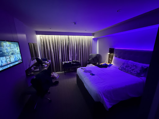 A standout feature of the room was the rainfall shower, which had excellent water pressure and temperature control. There was also a smaller showerhead for added convenience. Having an iron in the room was a big plus. The HDMI port on the wall near the kettle was very handy; I brought my Xbox and connected it easily. The Ultimate WiFi worked well overall, with only one brief disconnection. However, it was slightly inconvenient to have to collect a new WiFi code from reception every day. Also the lift can only be accessed to get to rooms with your room keycard.