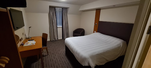 Fairly friendly staff; some better than others. Reception bloke on nights was sound and young man in the kitchen very polite and friendly. The place was visibly short staffed. Car park was just about full up on a night, big wagons taking up multiple spaces. The site is well located but the building is becoming dated. The guttering looks ridiculous. Room was okay, no wow factor whatsoever but it was clean and suited our minimal needs, but we had low expectations to start with. Acceptable at that price point. COVID restrictions meant that a like-for-like experience could not be achieved, but the company doesnât pass the savings on to the customer. As we stayed over two nights we were told that cleaning staff wouldnât enter our room, âbut if you need anything at all just ask at receptionâ-we asked for loo roll and extra refreshments half way through our several night stay but we didnât feel welcome asking for more. We felt like we had to make do with the towels originally provided. Why not keep extra towels / refreshments / loo roll in the actual room? You must be saving a lot of time and money by scrimping in this way. Donât even get me started on the breakfast situation. They take your order once, claiming itâs unlimited / all you can eat (WARNING: itâs not a buffet anymore) BUT they donât revisit the table to ask if you want anything else. We became wise to this and just ordered extra to start with. Lots of menu items are tiny so youâve got to order several. We get that when you used to do buffet service (help yourself) staff didnât feel the need / responsibility to check-up on tables; but now youâre doing table service you forfeit the right to be lazy and should now be actively checking up on customers, because weâre now at your mercy and you canât have it both ways. One tea bag in a large tea pot to serve two people? Hideously weak. Hot chocolate not covered by breakfast, but itâs the same price as a latte. Staff always got our orders wrong with nearby tables too; so they just ended up handing plates back and forth. Half the restaurant was empty but they hoarded everyone on tables close together; doesnât take a rocket scientist to know you need to spread people out. Snotty eggs, anaemic sausages and sticky bacon. If it was buffet style I would reach for the items more well done/cooked more; we donât get that luxury now. Cutlery and mugs often had dishwasher residue on them; dreadful.