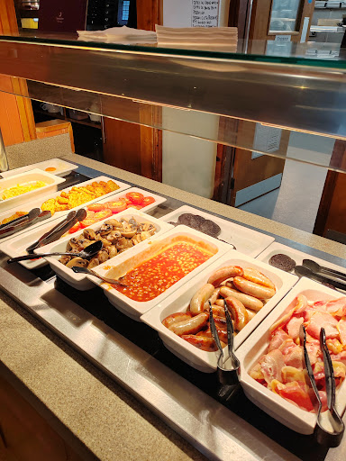 I booked and paid for breakfast on the Monday which I totally regrets It was a shamble We were seated at a table which was not clean and waited and waited 2 more families came into the area after and were served I asked for some help from one of the Waiters who was busy but no one came then I called to the host a bearded man who has sat us down about about 20 minutes before and asked for some help What would you like he said ? I said our breakfast please OH he said and took our order We had no plates cutlery milk and the bits everyone else had so I had to ask for that The toast area was a joke not set up for social distance at all