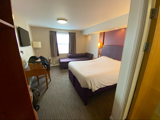 I'd like to add - for the sake of making this negative review more relevant to people whom will actually be visiting this dated and antiquated establishment; there were holes in the walls where an old canvass had fallen off and not been replaced, there was mold on the bathroom grating and the shower soap dispenser had absolutely no soap in it. If you are expecting air-con, there isn't any. If you're expecting air to at least be able to come out of the vents using the thermometer and 'how to' sheet provided, it doesn't work. If you would like to open the window to allow some sort of oxygen to enter the room, you can't. If however, you are satisfied with the provision of a fan that is more than capable of blowing around this super-heated air, then great news! There IS one. And Premier Inn will state that this is adequate. Demolishing the hotel and starting again would be my suggestion, but what do we know. We're just the oiks that have to stay there and be grateful.
