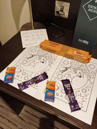 Got to say this is the best Premier In I've stayed at so far and I've stayed in quite a few. I don't normally leave reviews but couldn't fault the place so thought I'd leave one this time. We went to Legoland Windsor and stayed here after as it's only about 20mi mins away and near the M4 for the return journey home. The room was very clean and tidy with nothing to fault and the staff were very friendly and helpful and kindly left a hand written note to us wishing us all a good stay with a pack of custard creams, chocolate bars and colouring books with crayons, the boys were thrilled 😄 The restaurant was a a Bar and Block steak house, we had the meal deal and with the upgrades the meal was fantastic and the boys really enjoyed steak from the kids meal which is unusual for kids meals, they loved it. The food was very prompt and the staff were really friendly. The drinks selection was good with some nice IPA's and the 2 for 1 cocktails were cocktail bar worthy, we were very impressed. The morning breakfast was usual cooked to order but way better than usual as was cooked on the steak griddle so very tasty. Had a walk around Dinton County Park which was close by before starting the journey home, was a fantastic stay...