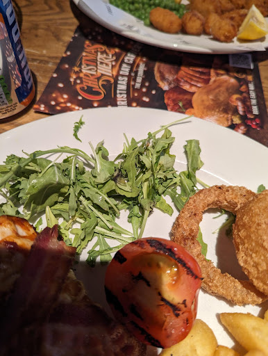 Read moreThis is the first restaurant I have ever visited which requests staff to be tipped even before the meal has been served. I did tip ÂŁ5 but I wish I had not. The Hunters chicken I had was missing the BBQ sauce stated in the menu, the Mozzarella and cheddar cheese had obviously evaporated during the cooking process because it wasnât present on my plate! The rocket leaves were withered and very dried out with some of the leaves rotten and black! I tried to complain to the waiter with a beard, walking about with shorts. However he started to make excuses and didnât appear interested in what I was saying at all. My wife had scampi which was ok! After eating what was served we left and will not return! I would not have left ÂŁ5 tip if I knew what poor meal and service we would receive. I have photographs of my plate of âHunterâs Chickenâ! âHUNTER'S CHICKEN A roasted chicken breast topped with melted Mozzarella and Cheddar cheese and crispy bacon, smothered in BBQ sauce. Served with chips, a grilled tomato, beer-battered onion rings and finished...