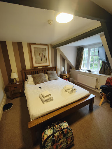 My only gripe being 6ft 2in was that the corners of the bed frame poke out and trying to dodge the ceiling beams I knocked both knees hard whilst trying to get around the bed. There was also nowhere to sit down apart from the bed and there's only so long you can sit/lean on a bed before it gets uncomfy but I do get that room probably isn't big enough for a table and chairs. There was a good TV on the wall but no remote. The room was equipped with a portable fan and a heater also. After looking at the menu we decided to book a table only to be told the chef was off sick so they weren't able to take bookings which I can't be helped.
