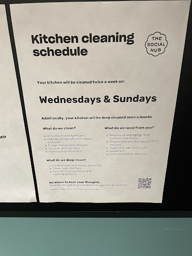 I've lived in the Social Hub Glasgow for 5 months during my semester abroad. It was very convenient that they accept stays for less than an academic year, the facilities looked modern and I was looking forward to all the events. The room itself (Single) is pretty small and designed for a hotel stay rather than student accommodation. It lacks a real closet and more storage space. However, the room was clean, modern and the single bed bigger than expected. I really like the chromecast feature of the tv and the spacious shower in the bathroom. My room was pretty dark most of the time because it was facing the courtyard and no sunlight came through my window. I loved all of the events, especially the arts & crafts events and they are a great opportunity to connect with other students or co-workers. I've met many friends there or at the Monday Morning Coffee, which I really enjoyed. The staff at the reception, in the restaurant/cafe/bare are always kind, especially Daniela at the front desk. In my first weeks at the Social Hub we had a fire alarm in the middle of the night every other day, which was quite annoying and (thankfully) just false alarms. Recently it only happend about once a month. There was one issue that never got resolved: The shared kitchen. Students share a kitchen with up to 10-15 people. The first time I walked into my kitchen I was shocked because there was rotten meat in the sink and the ovens smelled so bad like rotten fish that I couldn't use them. Students are supposed to clean after themselves, but according to the kitchen cleaning schedule the kitchens will be deep cleaned once a month. That obviously didn't happen in that kitchen for a long time. The cleaning crew is also supposed to clean the surfaces, furniture, outsides of cabinets & microwaves, fridge twice a week. Most of the time they only took out the trash. I was glad that I could move to another room and kitchen after a month. The kitchen was way better for the first weeks, but then someone new moved in and the kitchen got worse than ever. The kitchen was deep cleaned twice in four months. In April and May no deep clean took place. The state of the kitchen was horrible and the smell so disgusting that I couldn't cook anymore. Me and my flatmate complained to the reception multiple times and asked for a deep clean or consequences for the person who caused this mess. More than a friendly email to remind every student to clean up after themselves didn't happen. When I asked about the deep clean I was told that 'the cleaners won't clean anymore until we show an effort to keep our kitchen clean' and that it's 'our job to communicate better with each other'. This was really frustrating because 1) Students pay a lot of rent which INCLUDES cleaning services 2) collective punishment is not fair 3) I didn't know who caused this mess 4) the kitchens weren't even cleaned before the new students arrived, we had to clean out spoiled food and wash the dishes from previous students. We put up post it notes, wrote on the board and tried to set up a kitchen WhatsApp Group with the student manager. Someone just didn't care about all of that and will continue to behave like that if there are no real consequences (e.g. extra fees).I wish the Social Hub would take the issues the students are facing more seriously, especially because it used to be called 'The Student Hotel'. I had the feeling that Hotel Guests were treated differently. I had to spend a lot of extra money on pre-made food or eating out and couldn't move out without paying for the whole stay anyway. There will be always someone who doesn't respect the shared kitchen space and this issue will continue. At this point it's just a matter of time until pests show up. I don't regret staying at the Social Hub because of the events and the friends I've made, but I wouldn't book a...