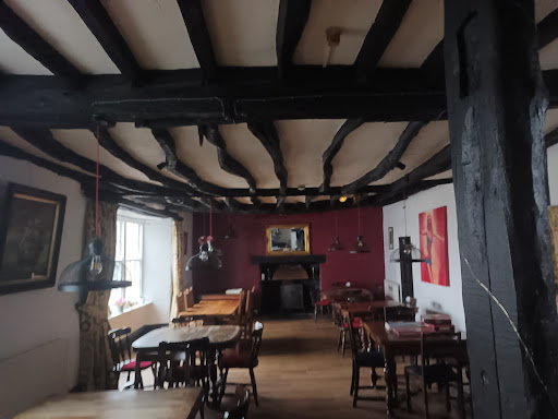 The pub itself was very nice in the back bar New London chef we were told and the pasta was very delicious I have to say. Good portion and well cooked. Itās all they had on that evening but good for us 5 varieties. The beer was also very good for me it was a dark beer called black jack tintagel brewery They had an ipa too but it soon ran out. The front bar was a bit noisy due to rugby being on but did not bother us. All the staff were really nice. The bedroom was clean and well prepared but was very basic no loo just a sink and no tv I think the mattress may have been original since the pub was built in the 11th century.š Quite lumpy and sagging to the middle. The toilet and shower was a bit of a faff up and down a couple of stairs across the hall off the side of breakfast room Breakfast was also a bit odd It was a hostel style set up cook your own food. We were told that toast eggs and milk etc were to be used But the fridge was full of other items and we didnāt know what was ours to use and what belongs to the other people staying. Some seemed to live in the pub full time? We found this in the heritage museum about the pub No wonder everything was wonky...
