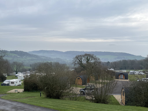 Read moreWe had a lovely holiday at Wood Farm, it is very picturesque and in a great location to visit the surrounding towns of Lyme Regis, West Bay, Weymouth etc. Before booking though, please make sure that you are fully aware that Wood Farm is quite literally built into a hill. A steep hill! We use a campervan and a folding caravan with awning when on holiday, my wife called in advance to confim this would be fine as she is disabled and has a blue badge. Our camper has a bed specifically for her/us. Unfortunately the pitches are set up with a level concrete pad for the caravan and quite a sharp patch of stones/"all weather pitch" (for drainage) for the awning that isn't "that level" everything kind of pitches backward down the hill. Our camper ended up (even on chocks) pitched at about 25 degrees. We spoke to the management team and they were very helpful and so very kindly gave us the pitch next to ours to put the van on, without which we would not have been able to stay. The facilities were very clean and the staff were all very helpful and friendly. The cafe/bar is useful and located next to the swimming pool, but expect to pay a premium for spirits - JD& coke and G&T worked out expensive whilst watching the ladies Euro Cup Final (GO LIONESSES!!). There is no formal entertainment on site, so be prepared to entertain yourselves and little ones with games and swingball or whatnot. The nearest large supermarket is Tesco, which we used a few times. There is nothing that the site or management can do about the road noise though, at certain points, especially late at night, the main roads next to the site are used by various groups of folk as a racetrack or simply a useful place to "open up" their vehicles at full tilt. It can get "Donington Park" loud at times. Just be aware if you have young children or are nervous of sudden loud motor noise, you WILL be disturbed, your calm will be shaken Ha ha!. Water points were very handy and the power outlets were very well positioned. My only minor gripe that the management let down, was the lack of hand soap/sanitizer in the toilets and especially the ELSAN point. This wasn't a one off, and my wife found only one sink had hand soap in the ladies, for pretty much the whole week. I am not being overly critical, honestly, and would definitely recommend Wood Farm for families looking for a base to holiday from. The views down and across the hills...
