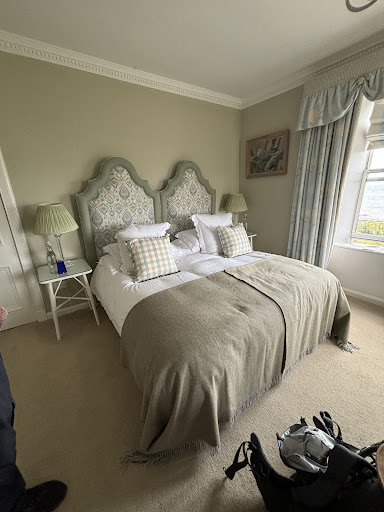 Upon booking a 5 star recommended premium priced HOTEL, I did not expect to be living in the spare bedroom of a woman's house. ||||Beginning from pulling up to the only available parking being on the side of a busy national speed limit country road, we received an abrupt surreal welcome that felt like it was building the tension of the beginning chapters of a Stephen King novel. ||||During this odd welcome, she awkwardly asked, "oh, are you..?" Leaving my wife and I very confused until pointedly looking at the 8 month baby bump confirming that she was asking if we were pregnant.||||Once this was established and my wife confirmed that she was pregnant, Fiona then decided to disclose how "lucky" we were that we didn't arrive two weeks earlier as she was just getting over having shingles.||It was said as if we should have somehow known to disclose our pregnancy to her prior to arriving.||||The fact that she was still receiving guests while having the extremely contagious disease is a major concern.||Surely this should have been disclosed to all bookings she had for that month giving people a heads up that they were entering into a household with shingles.||||We were then ushered into a very cluttered and untidy hallway, led upstairs passing some questionable decor including a full size taxidermy hawk and the creepy bust of a child which stood out among the mess.||||After stepping over dust sheets across the threshold of our room, she then decided to inform us that we may have to make ourselves scarce as she was expecting a window fitter to come and replace the bathroom window in our en suite.||We didn't have an issue with this as we were planning on going back out anyway.||||When we made this known, she abruptly turned around and asked me if I could stay in the room while the window was being fitted to keep an eye because she was worried about the fitters damaging furniture.||It was then I realised that I was paying £264 per night to watch a woman's house for her and decided that I wasn't up for that and left to go for lunch.||||Before we could leave, she insisted on booking us in for dinner into a hotel in Port Charlotte. When my wife and I said we'll have a look at the menu to see what there is, she disclosed the fact that she had already booked us in without consulting us.||||After sitting in the car and looking up the menu to discover it looked mediocre and overpriced, we decided just to drive to Bowmore and sort our dinner by collecting a Chinese takeaway.||||After enjoying that, we did the dreaded drive back to Loch Gorm House to find Fiona fully channeling Kathy Bates by standing in her kitchen in the dark and stopping us on the stairs to very sourly ask where we had been.||||I graciously informed her that we had just gone to pick up a Chinese in Bowmore, to which she replied that "I know, nobody goes there" as if to slag off the nice meal we just had because it wasn't the one she permitted us to have, and if she knew where we were why did she ask? ||||She then asked what we wanted for breakfast. Unfortunately the majority of the options were egg based and I don't like egg, so I just requested a simple roll and bacon. She seemed to really want to make me an egg, before eventually relenting and agreeing to just make me some bacon.||||Then came the one bright spot of the experience where we enjoyed a soak in the massive standalone bath in our en suite. However, Fiona even managed to ruin this and make it weird.||||When we went down for breakfast in the morning, she asked if we used the bath, and whether we bathed together, after awkwardly confirming this to her she said "oh that's funny, I didn't hear you and normally I can hear guests using the bath"||This felt super creepy and uncomfortable and she then followed it up by asking what time we were in the bath. I perhaps had enough at this point and said "I don't know, I didn't exactly check the time."||||For breakfast she had left out a selection of pulpy fruit juice and "fresh" fruit. The fruit was rancid, but I considered lifting some strawberries to be polite. Upon lifting the empty bowl that had what I thought were rustic age marks at the bottom, the marks began to move in the bowl, confirming that it was in fact dirt lying at the bottom of an unclean bowl. I even checked the second bowl to see if it was just the top one, and it too contained loose dirt at the bottom.||||After abandoning that idea, I sat down to pour a cup of tea and grabbed the sugar bowl to see dog hair embedded in the granules, the porridge was also garnished with dog hair.||||Then Fiona brought my bacon roll and my wife's scrambled egg and bacon over, and there was also dog hair on her plate. I sat and ate my bacon roll while being watched intensely by Fiona and swatting away multiple flies and wasps that were swarming the dining space. Eventually Fiona asked if it was okay if she nipped out to the bank and left us to eat by ourselves, which we were very grateful for. Once she left, my wife ditched her eggs and went up the stairs to vomit despite the fact that any of the disgusting food didn't actually pass her lips and I took a closer look at the kitchen counters to find an unhygienic, cluttered mess consisting of uncovered containers and trays of sticky food crawling with flies, unwashed utensils, pots and pans with old bits of food still stuck to them and very unhygienic food preparation surfaces, which would not pass any health regulations even if the health inspector was blind.||||We then left to find my pregnant wife some edible breakfast and came back to Fiona yet again informing us that she had booked us dinner without consulting us. We went upstairs to get ready for the whiskey tour we had booked and upon leaving, I let Fiona know that we don't want the dinner reservation and asked if I can cancel that along with the taxi she had booked for transportation. She was clearly very pissed off that we again didn't want to eat somewhere that we hadn't chosen