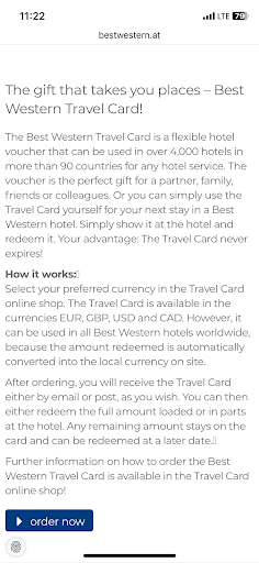 On 6 Sept the hotel finally contacted me to redeem my travel vouchers. After completing the transaction they did NOT reverse the charge on my credit card. After repeated attempts to contact the hotel via phone (left messages with the front desk) and via email (all unanswered), Best Western corporate finally stepped in to reimburse me for the double charge. Please note, the hotel did not even return any communications with Best Western customer services! Completely ghosted both me, their Italian customer service office, and the US customer service office. Best Western is now routing them through their quality assurance branch. Oh, and I never received a receipt - for ANYTHING. I ask you, is it unreasonable to expect the hotel to be able to produce a receipt? I think not. Disgraceful.