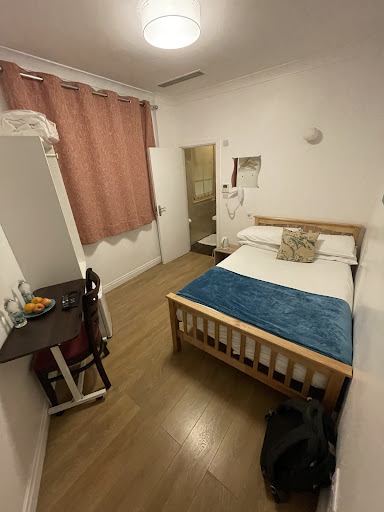 WiFi was included for free. The rooms are tidy and clean. Mine included a double bed (they upgraded me from a twin for free) a desk, a mini refrigerator, a small bedside table, an area to hang a few items, an iron and ironing board, a hair dryer, shower, toilet, and above the sink was a small shelf. One thing that stood out to me was the hand pump soap for the sink and showers instead of the usual miniature soap and shampoo, etc. (As someone who wears contacts most of the time I can’t use bar soap to wash my hands before putting in or taking out contacts as it leaves too much residue, so this is a big deal for me.) Please note that toothpaste and toothbrushes etc are available in a vending machine, but there is also a Tesco and a small co-op within a short walk. The amenities provided were perfect for my needs on my trip.